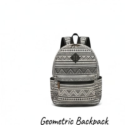 A book lays open, waiting, while light catches the threads of a handmade rug. Someone left in a hurry, throwing down the backpack and a burst of color before running out the door. Black metal bedframe, geometric backpack, and plush cream shag rug.