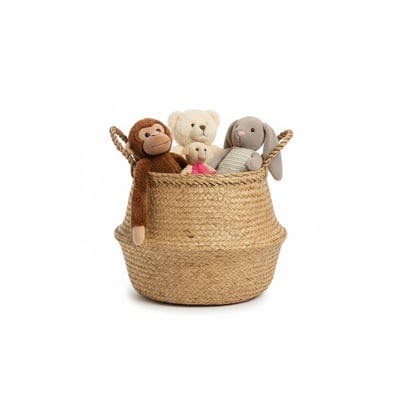 Sunlight warms a yellow rug waiting for its next game. Someone paused here, maybe lured away by a story, leaving the dolls patiently behind. A chalkboard wall, wooden toys, and a hand-woven basket create a space for imagination and play.