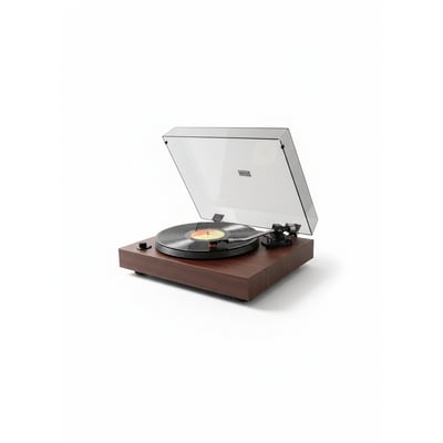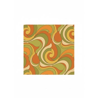 The needle drops, and the world softens at the edges—a moment suspended in the warm glow of a lava lamp. A golden companion keeps watch, eyes closed, head resting on the familiar, comforting rug. Dark wood tones, a swirling retro palette, and textured shag create a soothing haven.