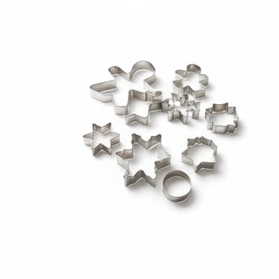 Steam curls from a forgotten mug as the promise of sweetness fills the air. Tiny metal stars gleam, waiting to be cut from the dough, each one a tiny wish suspended in time. Warm creams, matte reds, and copper accents create a cozy atmosphere, perfect for holiday baking and joyful moments.