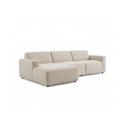 The day softens, stretching long and languid across the floor. Quiet conversation hangs in the air, the kind that fades into comfortable silence. A textured sofa, warm wood tones, and an abstract canvas create an inviting, grounded space.
