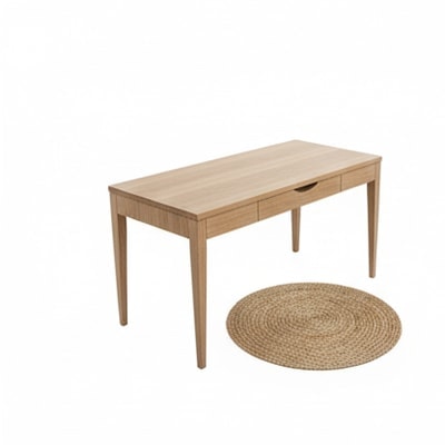 A forgotten sip of matcha, its warmth fading into the quiet afternoon. Sunlight paints the page as the world outside the window whispers with the wind, and a world is designed. Light wood, linen curtains, and the promise of ideas—a desk for dreaming in neutral tones.