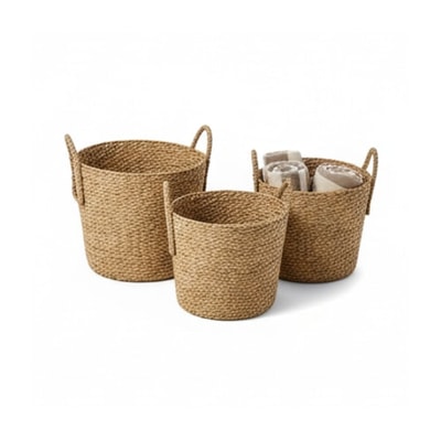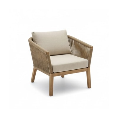 The water sighs softly, catching the sun's last rays. Towels wait in baskets, stories wait in a notebook—all that's missing is someone to break the spell. Woven chairs with linen cushions, a weathered wood table, and natural textures create this tranquil poolside haven.