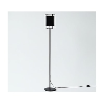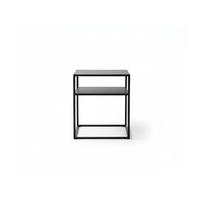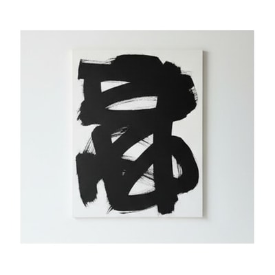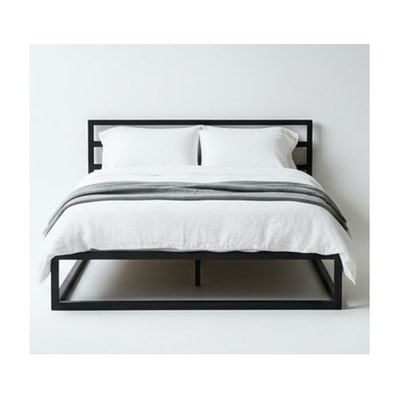 Footsteps fade through an open doorway, a moment suspended between rooms. A soft lamp spills warmth onto a stark canvas, a promise against the exposed brick. Black steel frames a low bed and side table, offset by white linens and raw textures.
