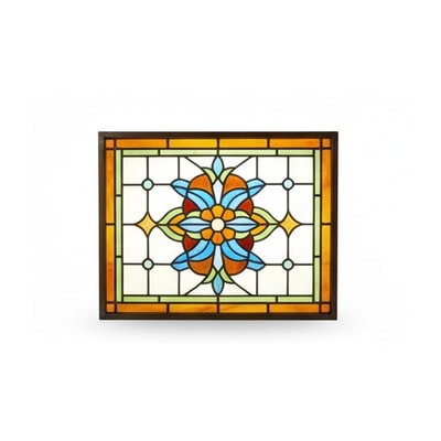 This kitchen scene captures a moment of simple joy. The warm wood cabinetry and earth-toned tiles create a cozy backdrop, perfectly complemented by the golden-hour light streaming through the stained glass. It's easy to recreate this comforting atmosphere in your own space.