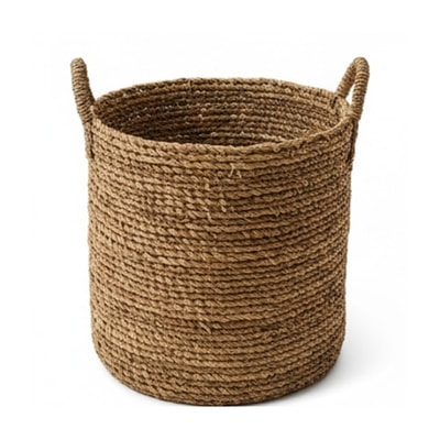 The day's warmth settles into oak and fiber, a quiet pulse against the pale walls. A fork clinks softly against a bowl, a page turns, sunlight kisses the leaves of indoor vines. Baskets of braided rope, a hand-hewn table, and sun-washed linen create a tranquil, earthy haven.